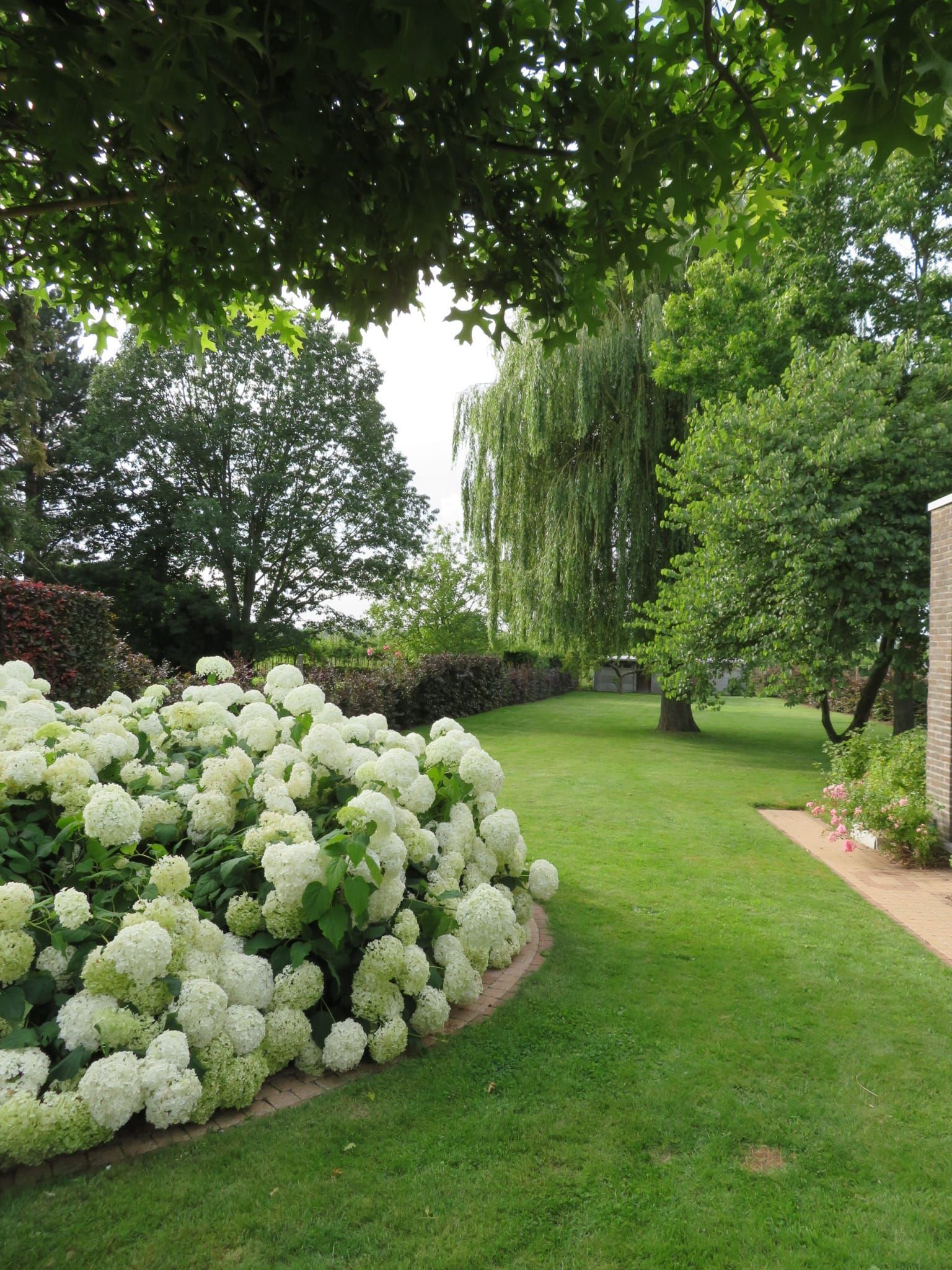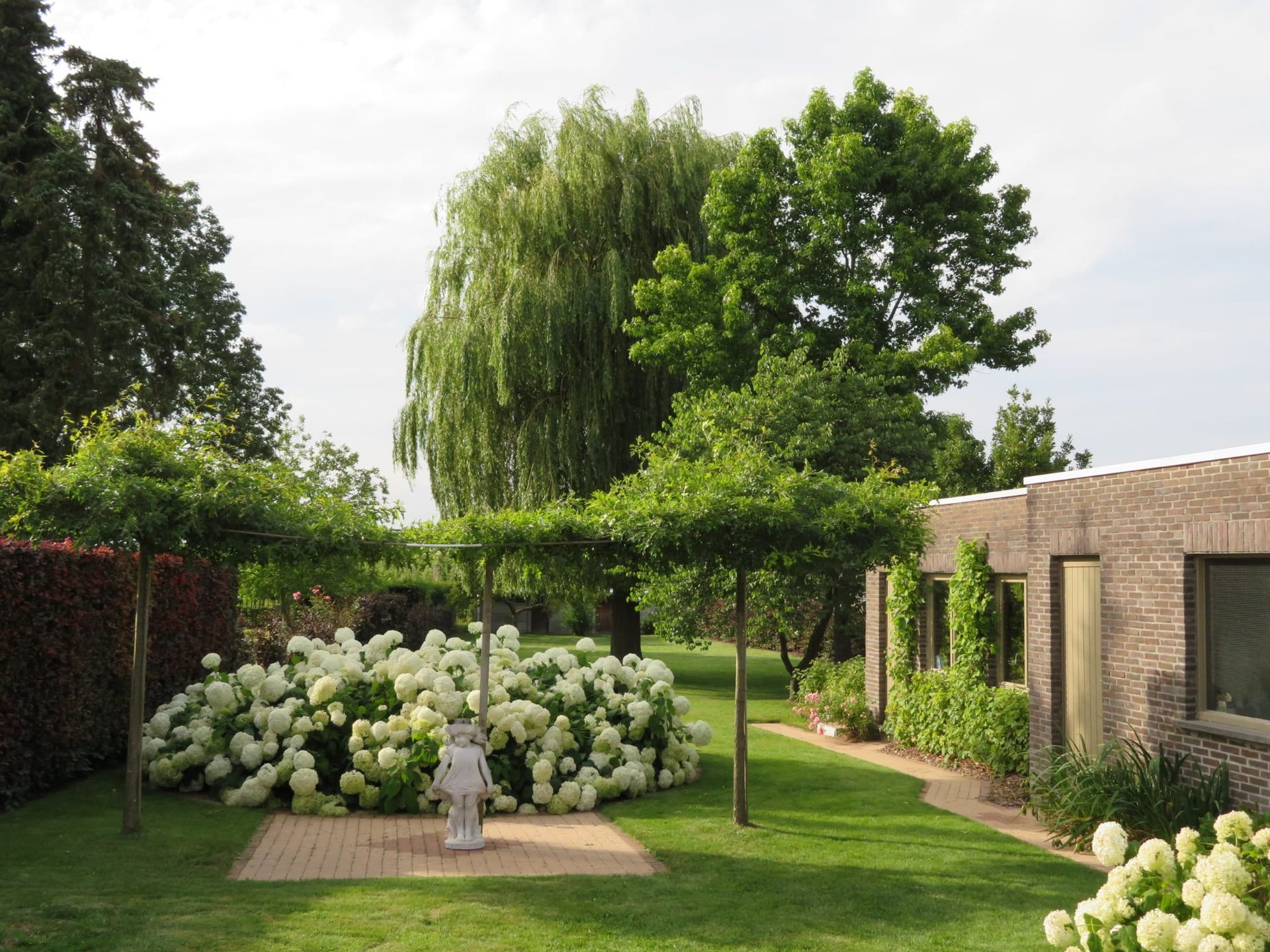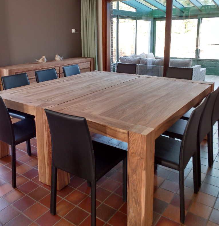 * Een ruime eetplaats die uitkijkt op de tuin