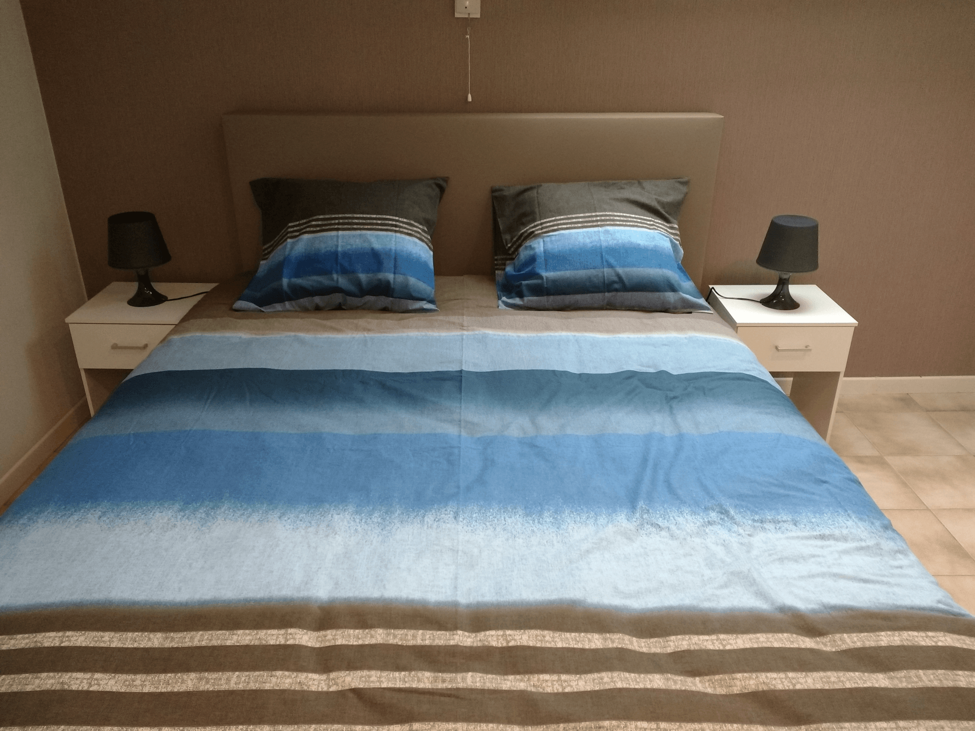 * Eén tweepersoonsslaapkamer met aangrenzend een badkamer met bad en dubbele lavabo